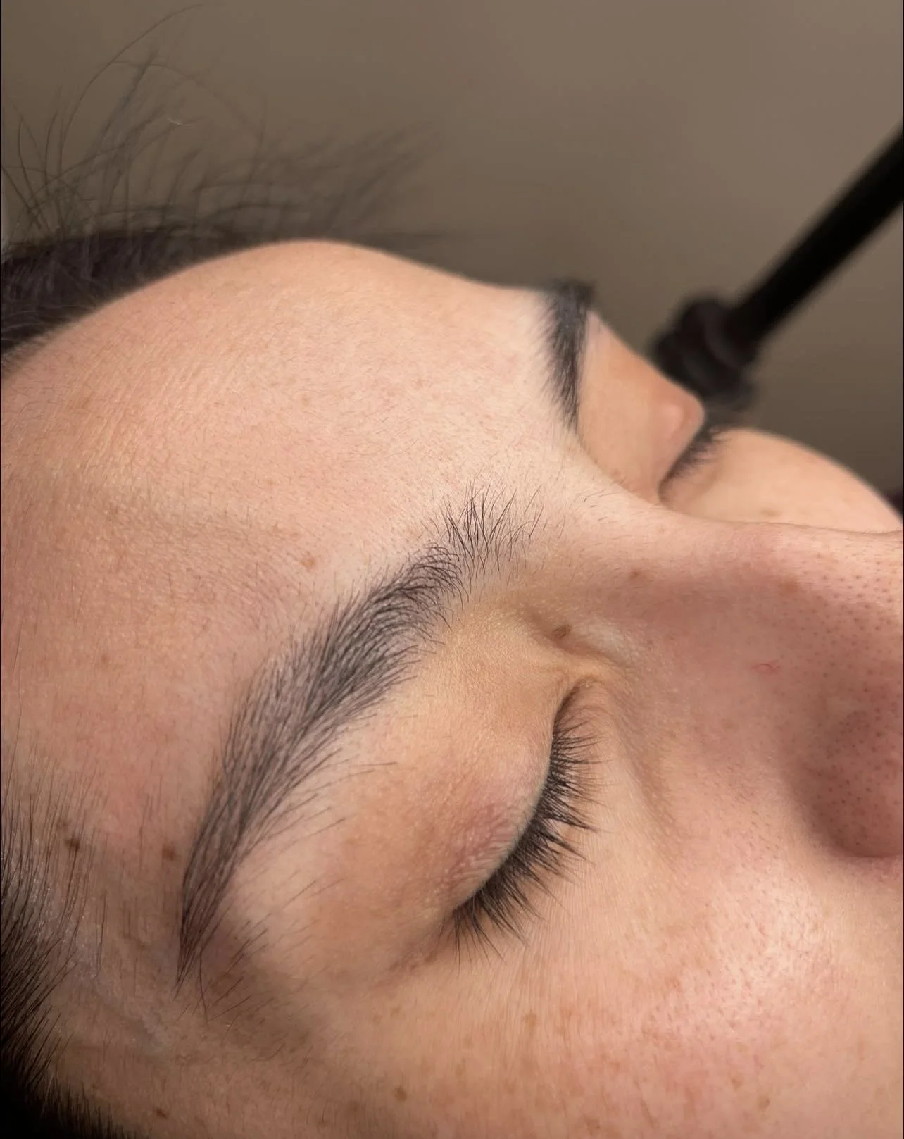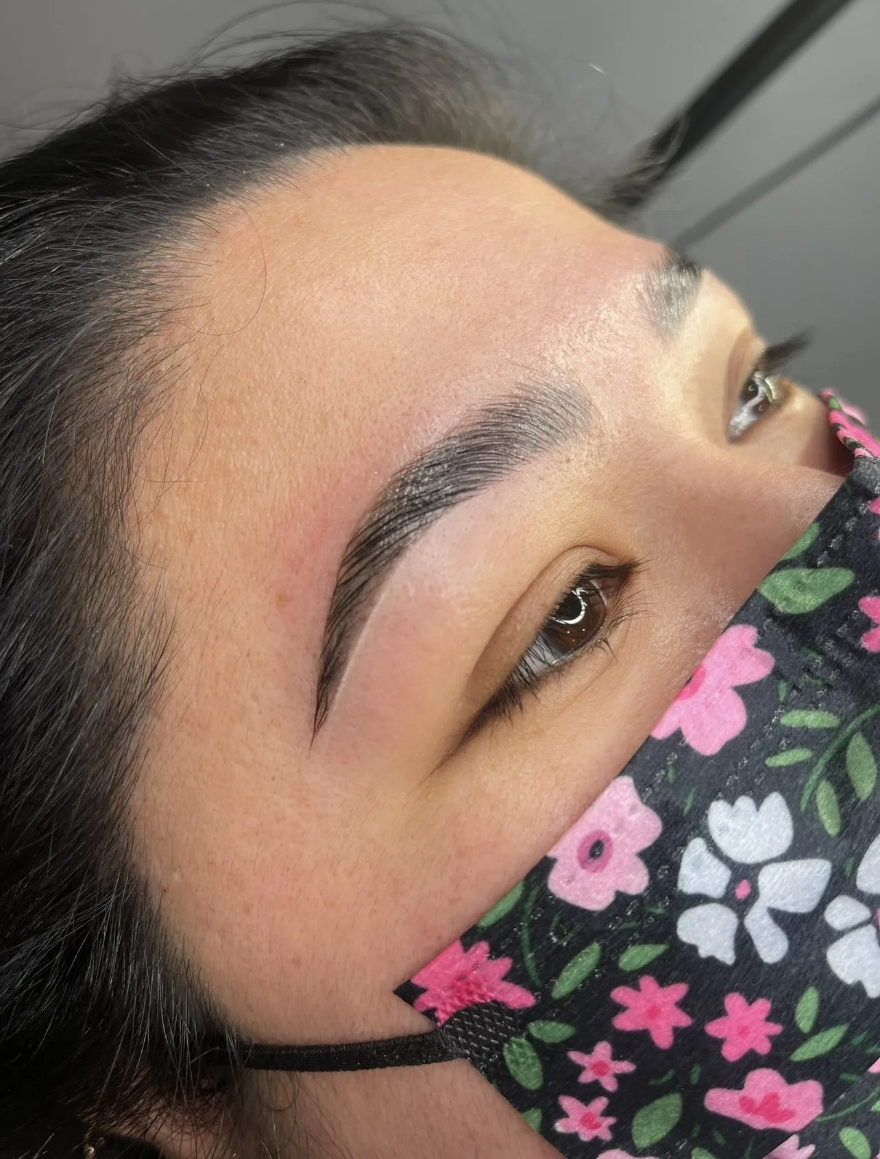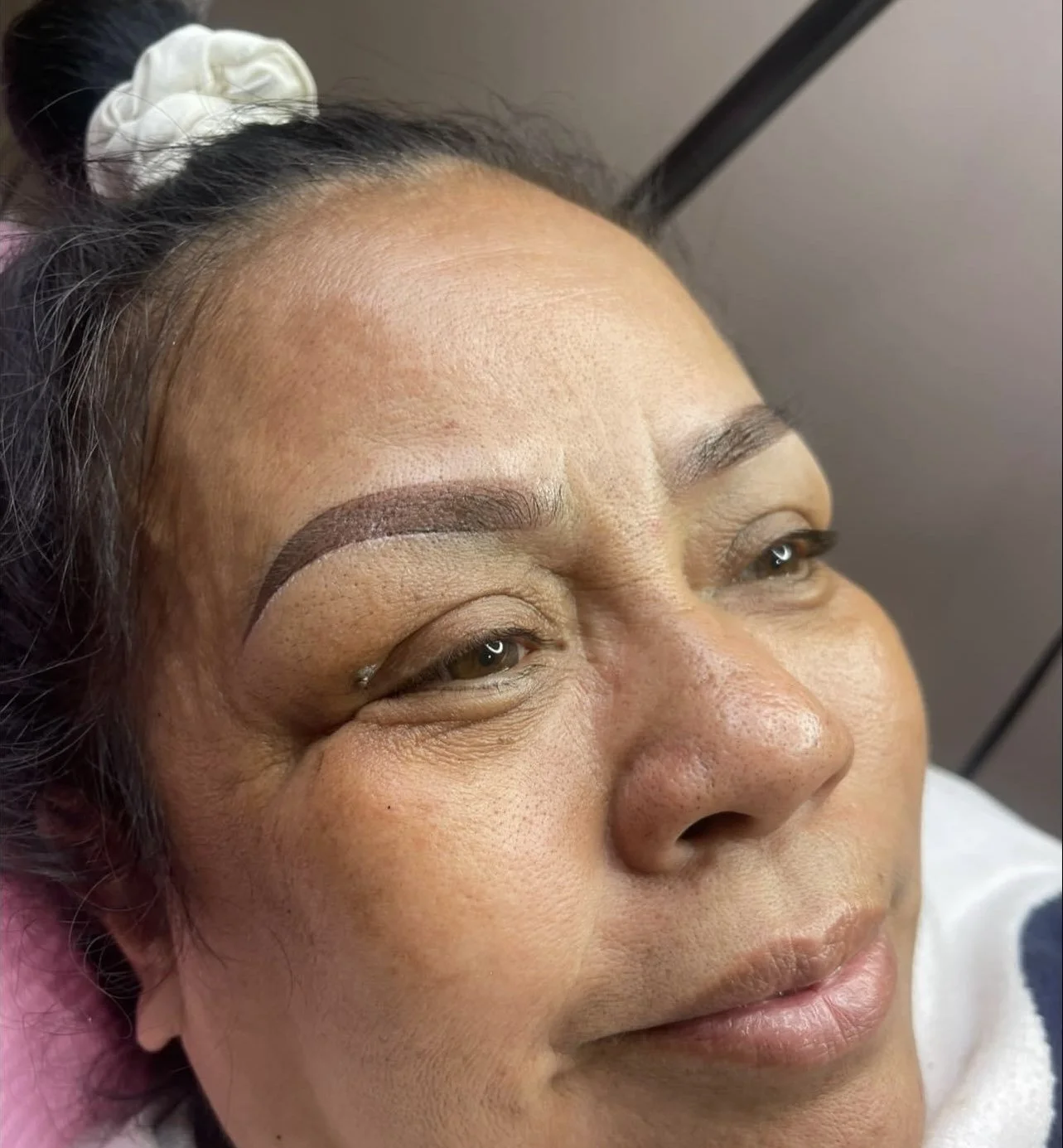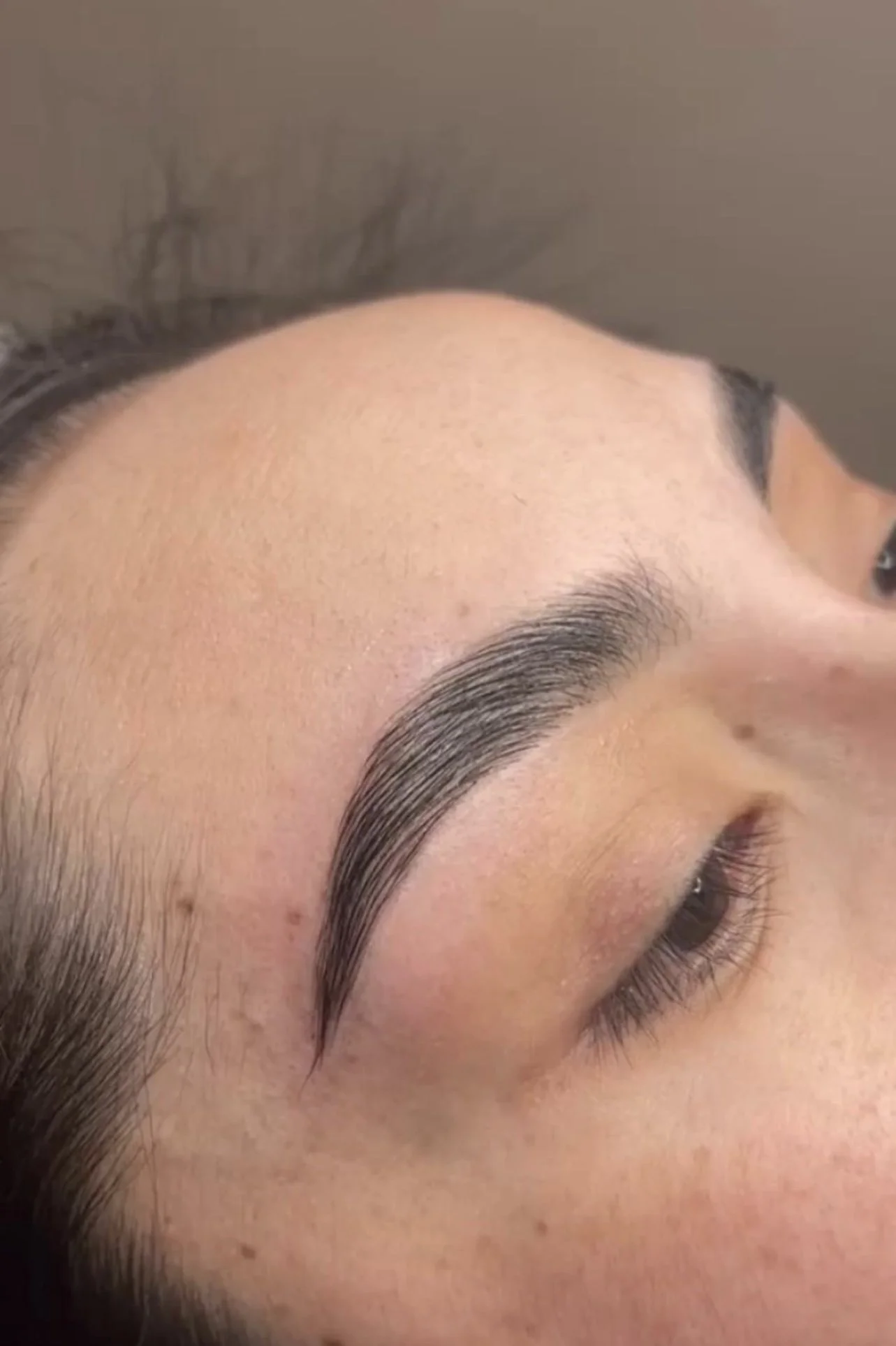 The appearance of filled-in brows. Unlike traditional microblading, which uses fine hair-like strokes, the ombré technique creates a gradient effect, with a lighter shade at the start of the brow and a darker, more defined look at the arch and tail. This creates a soft, natural, yet bold finish that enhances your face’s natural structure.