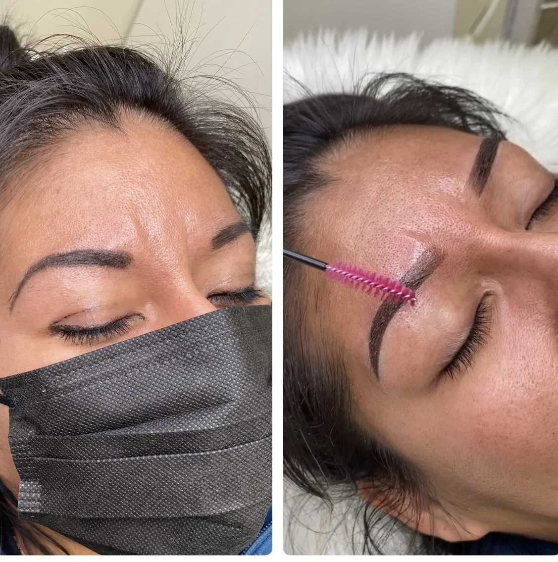 Ombré powder brows are a semi-permanent cosmetic technique that gives your eyebrows a soft, powdered makeup look, mimicking Ombré powder brows are a semi-permanent cosmetic technique that gives your eyebrows a soft, powdered makeup look, mimicking the appearance of filled-in brows. Unlike traditional microblading, which uses fine hair-like strokes, the ombré technique creates a gradient effect, with a lighter shade at the start of the brow and a darker, more defined look at the arch and tail. This creates a soft, natural, yet bold finish that enhances your face’s natural structure.